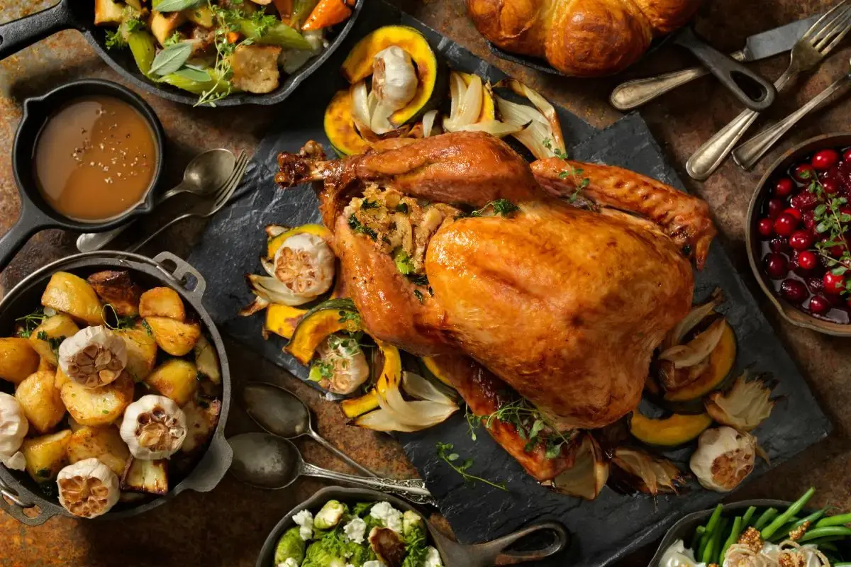 - aves recheadas, carnes nobres, acompanhamentos clássicos e sobremesas
